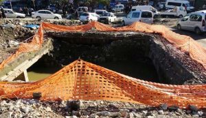 Trabzon’un Pazarkapı Mahallesi’nde, kentsel dönüşüm projesi kapsamında yıkımı gerçekleştirilen binanın altından Osmanlı dönemine ait taş kemer görünümlü köprü çıktı. Trabzon’da