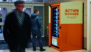 Evsizlere yardım amaçlı kurulan Action Hunger adlı dernek, sokaklarda kalanlar için bir otomat geliştirdi. Bu otomatlar evsizlerin yiyecek ve kıyafet gibi temel