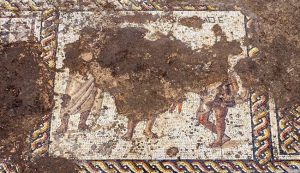 Arkeolog, muhtemelen toplanma ve sosyalleşme için kullanılan 1500 yıllık yapının altında çözülemeyen yazıtlı bir mozaik keşfetti. Arkeologlar, İsrail’in Caesarea Antik
