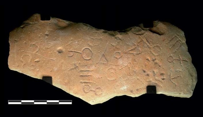 Taşın üzerinde bulunan sembollere bakıldığında bir yazıya ait olduğu anlaşılıyor. Sorun şu ki taşın üzerinde İspanya, Yunanistan, İber, Güney Arabistan ve Kenan gibi pek çok bölge dile ait sembole rastlamak mümkün. Ayrıca sembollerin yazılış şekli, anlamlı bir cümle kurabilmek için fazla karışık.