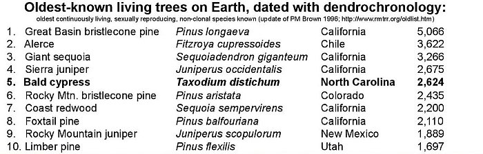 These trees are not remarkable only for their age. The rings of bald cypress trees are a clear record of the rainfall during the growing season of any given year.