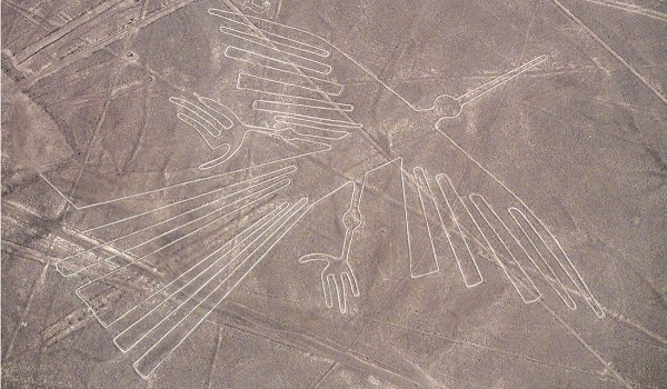 Past work has indicated that societies based in the region produced the wealth of geoglyphs during a 1,000-year period between 500 BC and 500 AD. The designs are drawn into the earth by digging ditches and hollows into the topsoil. Older images that have been attributed to the Paracas (like the one below) also feature ridges and piles of stacked dirt and rocks.