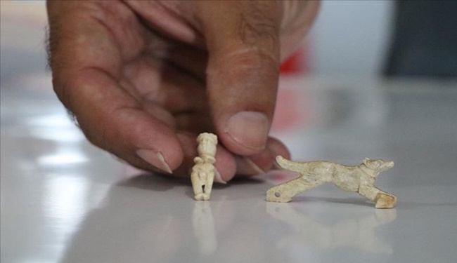 Bu eserlerle ilgili bilgi veren Arslan, “Agoranın batısındaki kemik atölyesinde üretilen objeler arasında, takı olarak kullanılan biri hayvan, diğeri insan şeklinde iki obje var. Bunlar antik dönemde insanların kolye olarak kullandığı takıların parçaları olmalı. Bunları dönem olarak 4. yüzyıla tarihliyoruz.” dedi.