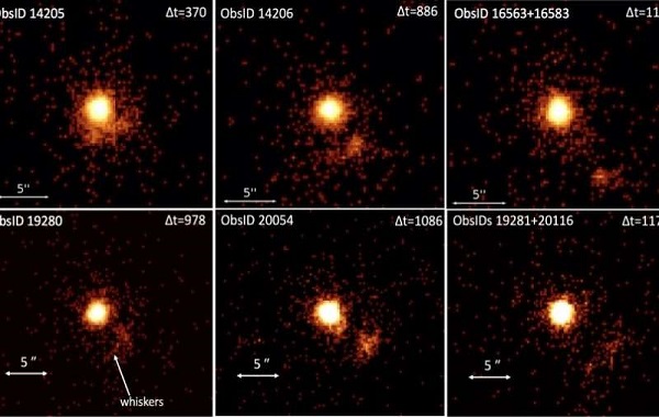 Now, a team of astronomers led by George G. Pavlov of Pennsylvania State University reports the detection of X-ray emission having its source in ejecta from PSR B1259–63/LS 2883. The emission was spotted by Chandra’s Advanced CCD Imaging Spectrometer (ACIS) during observations of this system between 2010 and 2017. Images from the space telescope clearly show X-ray-emitting clumps moving from the binary.