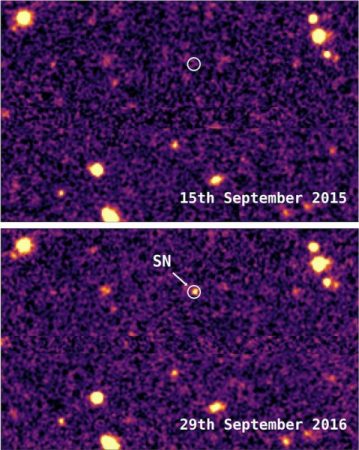 The exploding star, named DES16C2nm, was detected by the Dark Energy Survey (DES), an international collaboration to map several hundred million galaxies in order to find out more about dark energy — the mysterious force believed to be causing the accelerated expansion of the Universe.