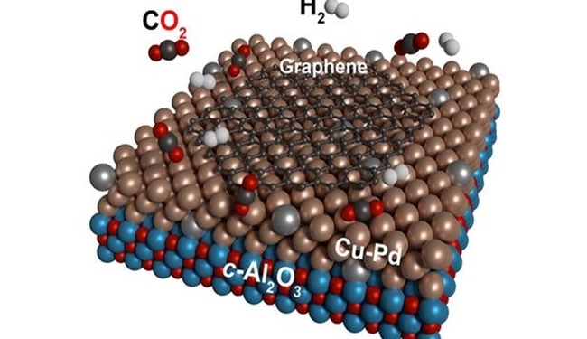 Odacığa karbondioksit ve hidrojen pompalanarak , katalizör ve substrat olarak bakır ve paladyum kullanılıyor. Bu proses atmosferik basınç ve 1000 ° C ‘nin üstünde sıcaklıklarda yapılıyor. “Eğer metal yüzeyine doğru oranda bakır ve paladyum tanımlanırsa,karbondioksitin grafene dönüşümü tek bir adımda oluşacaktır,” diyor araştırmanın baş araştırmacısı Mario Ruben.