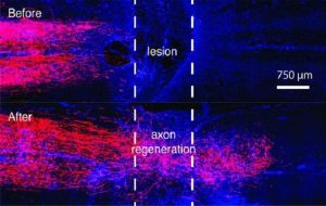 A recipe for regenerating nerve fibers across complete spinal cord injury The adult mammalian body has an incredible ability to