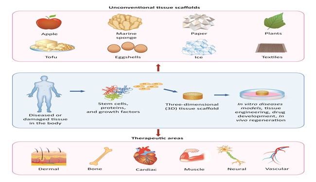 Trends in Biotechnology dergisinde yayınlanan araştırmada Massachusetts Lowell Üniversitesi’nden araştırmacılar; buz, kağıt ve ıspanak gibi günlük materyallerin doku yapıları olarak kullanılabileceğini keşfettiler. Pek de alışılmadık olan bu materyaller daha fonksiyonel, daha sürdürülebilir, daha ucuz olmasının yanı sıra dünyada birçok yerde bulunabiliyor ve birçok biyomedikal araştırma alanında uygulanabilir.