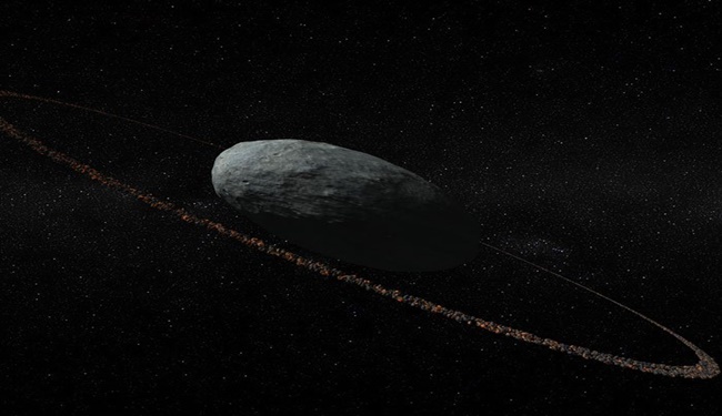 Hemen aşağıdaki illüstrasyon, gezegenin şeklini ve etrafında olduğu yeni anlaşılan tek hatlı halkasını gösteriyor: