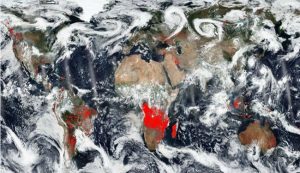 NASA’s Worldview program has some bad news. The Earth is on fire. The red points in the picture above are