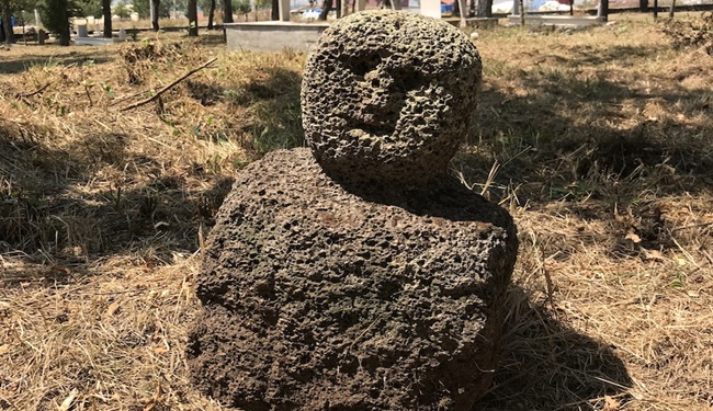Bugüne kadar yöre halkı ya da yetkililer tarafından bilinmeyen heykelin, buraya mı ait olduğu yoksa farklı bir yerden mi buraya taşındığı araştırıldı. Yapılan incelemede, heykelin volkanik bir cüruf türü olan “Bazaltik” malzemeden yapıldığı, bu malzemenin ise mezarlığın 2 km güneyinde yer alan ve Kuzdağı eteklerinden akmış olan bazaltik lavlar olduğu anlaşıldı. Yani taş heykelin gerçek yeri de burası olmalıydı.