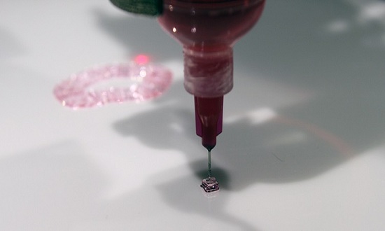 Günümüzde, sodyum aljinat mürekkep püskürtmeli biyolojik basımda kullanılan en temel jelleştirici; ancak bazı hücre tipleriyle uyumluluk sorunları var. Araştırmacıların yeni yaklaşımı Horseradish Peroxidase (Yaban Turpu Peroksidaz) enzimi aracılığıyla sağlanan hidrojelasyon sürecine dayanmaktadır. Bu enzim, oksidant hidrojen peroksit varlığında eklenen polimerin fenil grupları arasında çapraz bağlar kurabilir.
