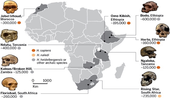 Yeni bulgulara göre insanın evrimi, Afrika kıtasının çeşitli noktalarından eşzamanlı olarak gerçekleşti. İnsanların, Afrika kıtası çapında zamana yayılan bir evrim süreci geçirdiği anlaşıldı. İlk modern insanların 200.000 yıl önce Doğu Afrika’da ansızın ortaya çıktığı düşünülüyordu. Benzer bulgular Afrika’nın farklı yerlerindeki 300.000 yıllık birçok mağarada var. Dolayısıyla Homo sapiens sadece Doğu Afrika’da değil, Afrika’nın farklı bölgelerinde evrimleşti. Prof. Chris Stringe, “Artık insanlığın tek bir beşiği olduğu düşüncesinden vazgeçmemiz lazım” diyor. İnsanların Doğu Afrika’da “insanlığın beşiği” olarak tanımlanan tek bir noktadan dünyaya yayıldığı fikri yeni araştırmaya göre artık geçerli değil.