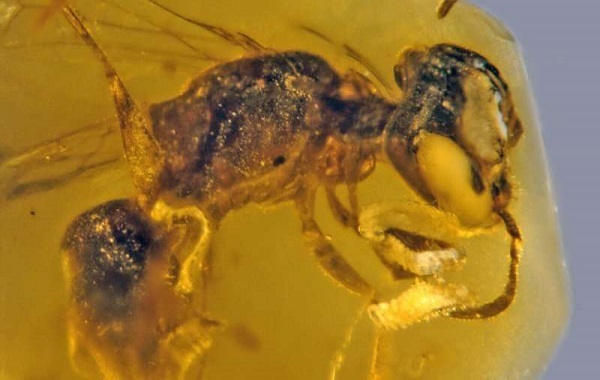 The mid-Cretaceous fossil from Myanmar provides the first record of a primitive bee with pollen and also the first record of the beetle parasites, which continue to show up on modern bees today.