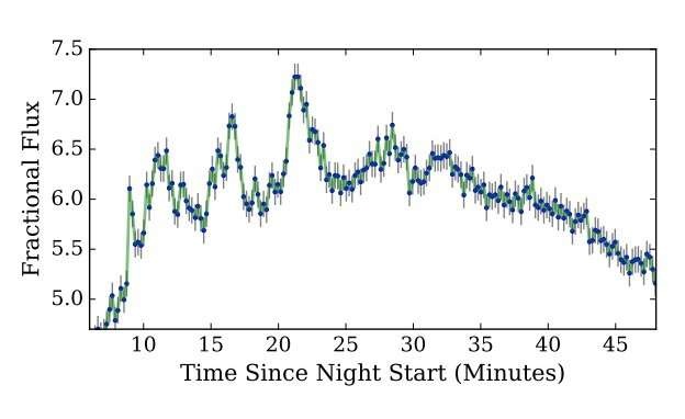 NGTS allowed Jackman’s team to detect a flare on NGTS J121939.5-355557 (NGTS J1219-3555 for short) on January 31, 2016. Located some 685 light years away from the Earth, J1219-3555 is a young (around 2.2 million years old) star of spectral type M3 about the size of our sun, however slightly more than five times less massive. It has an effective temperature of 3,090 K.