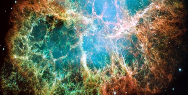 When traced back to their source, these gamma rays seem to point directly to the Crab Nebula, a supernova remnant 6,500 light-years away, with the pulsing remains of a dead star in its centre – the Crab Pulsar.