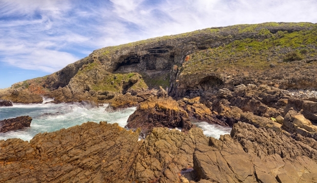 Güney Afrika’nın güneyindeki Ümit Burnu’nda yer alan mağara ve sığınaklar. Araştırmaya göre, arkeolojik kazı alanları, Afrika’nın güneyindeki Orta Taş Çağı’nda yaşanan kültürel ve teknolojik yenilikler ile iklim değişikliği arasında direkt bağlantı olmayabileceğine işaret ediyor. F: Christopher Henshilwood