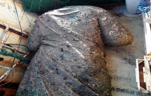 Muğla Marmaris’te, balıkçıların ağlarına 2 metre uzunluğunda, 300 kilo ağırlığında bronz kadın heykeli takıldı. Heykel incelenmek üzere Marmaris Müze Müdürlüğü’ne teslim edildi. Heykeli bulan 40 yıllık balıkçı Hasan Önal (59), “İlk defa böyle bir şeyle karşılaştım” dedi.