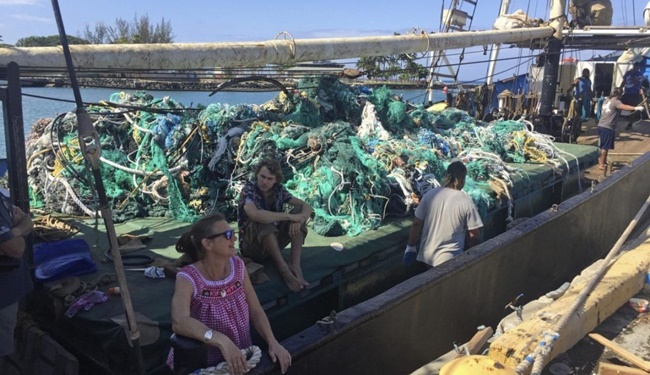 Okyanusta yüzen çöpleri temizleme çabasıyla yola çıkan bir grup çevreci, Büyük Pasifik Çöp Alanıolarak bilinen bölgeden 40 tonluk terk edilmiş balık ağı çıkardı.