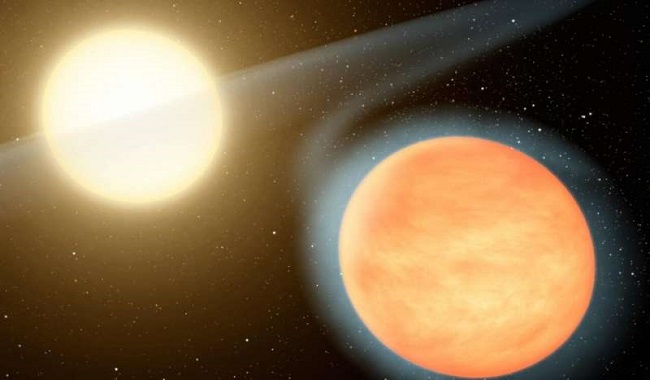 WASP-12b is known as a “hot Jupiter,” a giant gaseous planet like our neighbor planet Jupiter, but which is very close to its own star, orbiting its sun in just 26 hours. (By contrast, we take 365 days to orbit, and even Mercury, the innermost planet of our solar system, takes 88 days.)