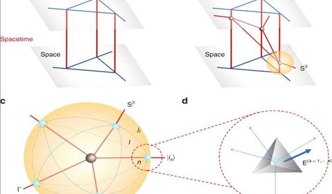In 1971, physicist Roger Penrose proposed spin networks motivated by the twistor theory with subsequent applications to loop quantum gravity (LQG). The spin networks were quantum states representing fundamentally discrete quantum geometries of space at the Planck scale. In the present study, the research team represented the spin network using a graph with links and nodes colored by spin halves. For example, any node with edges corresponded to a geometry and therefore a graph containing four-valent nodes corresponded to quantum tetrahedron geometry.