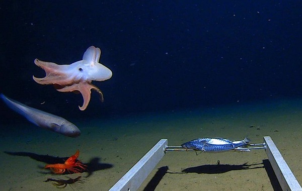 Marine Biology adlı hakemli yayında yer verilen araştırmanın öncüsü Dr Alan Jamieson ve ekibi, aslında keşif sırasında iki ahtapot gördü. 43 cm uzunluğundaki ilk ahtapot, 5 bin 760 derinlikte tespit edildi.