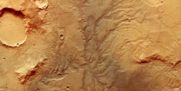 The morphology of the river valley is called ‘dendritic’ which means branching like a tree. Brain cells also have dendrites, which are branched nerve cell endings that reach out to each other and look like the river valleys on Mars. But we digress.