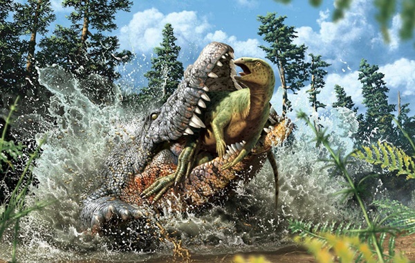 Confractosuchus sauroktonos adı verilen timsahın son yemeği de belirlendi. Hayvanın midesinin içinden yavru bir dinozorun kalıntıları çıkarıldı.