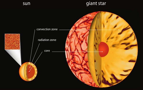 In order to find evidence for one or the other of the two paradigms, Lehtinen and his colleagues for the first time took a look at 224 very different stars. Their sample contained both main sequence stars, which are so to say in the prime of their life, and older, more evolved giant stars. Typically, both convection and rotational properties of stars change as they age. Compared to main sequence stars, evolved stars exhibit a thicker convection zone often expanding over much of the star’s diameter and sometimes superseding the radiation zone completely. This leads to longer turnover times for convective heat transport. At the same time, rotation usually slows down.