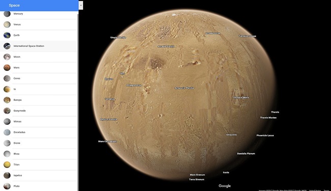 Dünya’nın her yerini inceleyebilmemizi sağlayan Google Maps, artık uzayı da ekranlarımıza getiriyor. Google, verileri NASA ile iş birliği yaparak elde etti. Yeni özellikle birlikte, oturduğunuz yerden uzayda dolanabilir, Uluslararası Uzay İstasyonu’nun içini gezebilir, uyduların üzerindeki kraterlere verilen isimlerin kökenini öğrenebilirsiniz. Ayrıca, Uluslararası Uzay İstasyonu’nun içini incelerken bazı bölümlerin ve cihazların adını öğrenebiliyorsunuz. Uzayda belirli bir yerin adını yazıp arama yapamıyorsunuz fakat gezegenlere ve uydulara tıklayarak yüzeylerindeki farklı yerlere bakabiliyorsunuz. Üç boyutlu görseller döndürülebildiği için güneşin nereye vurduğunu, nerenin karanlıkta kaldığını görebiliyorsunuz.