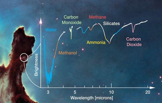 Within these clouds, on the surfaces of tiny dust grains, hydrogen atoms link with oxygen to form water. Carbon joins with hydrogen to make methane. Nitrogen bonds with hydrogen to create ammonia. All of these molecules stick to the surface of dust specks, accumulating icy layers over millions of years. The result is a vast collection of “snowflakes” that are swept up by infant planets, delivering materials needed for life as we know it. “If we can understand the chemical complexity of these ices in the molecular cloud, and how they evolve during the formation of a star and its planets, then we can assess whether the building blocks of life should exist in every star system,” said Melissa McClure of the Universiteit van Amsterdam, the principal investigator on a research project to investigate cosmic ices.